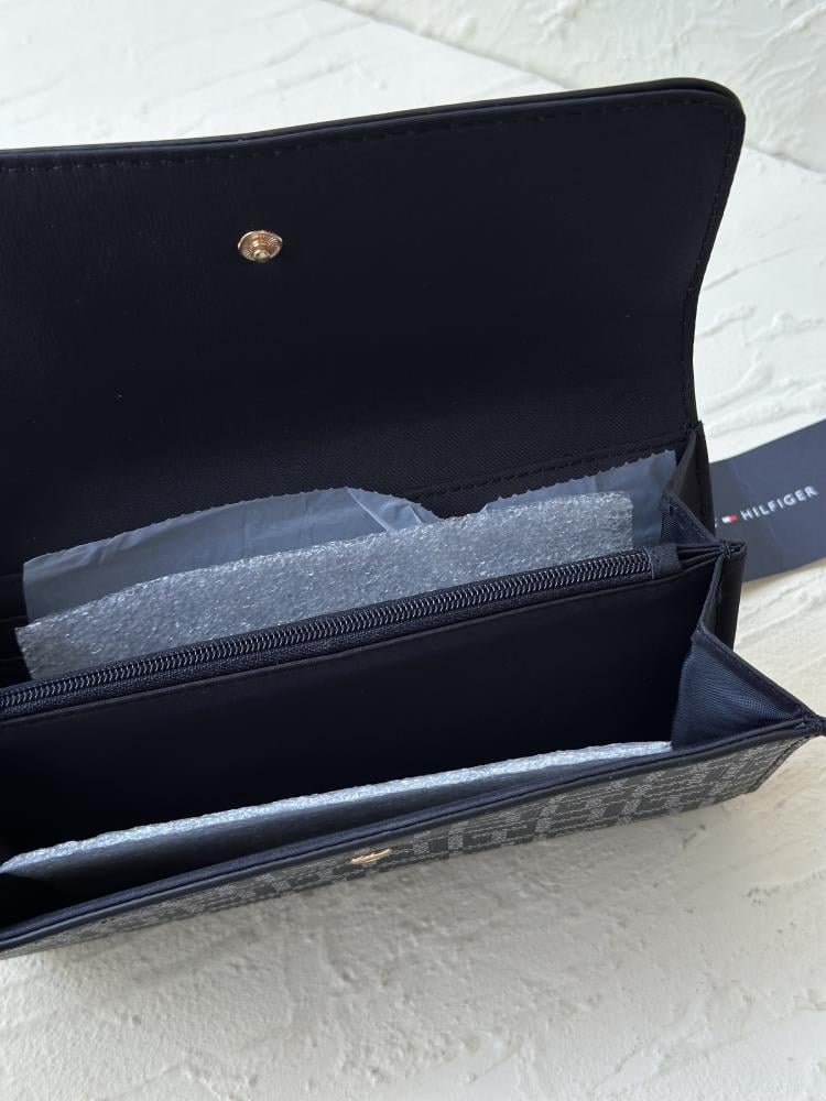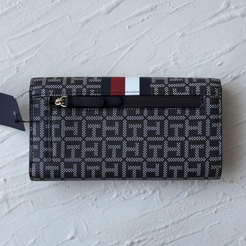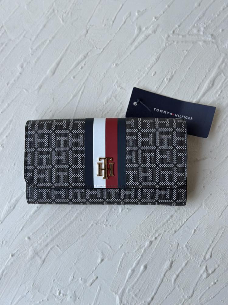 محفظة جلد كحلية انيقة من تومي هيلفيغر مزينة بهاردوير ذهبي.