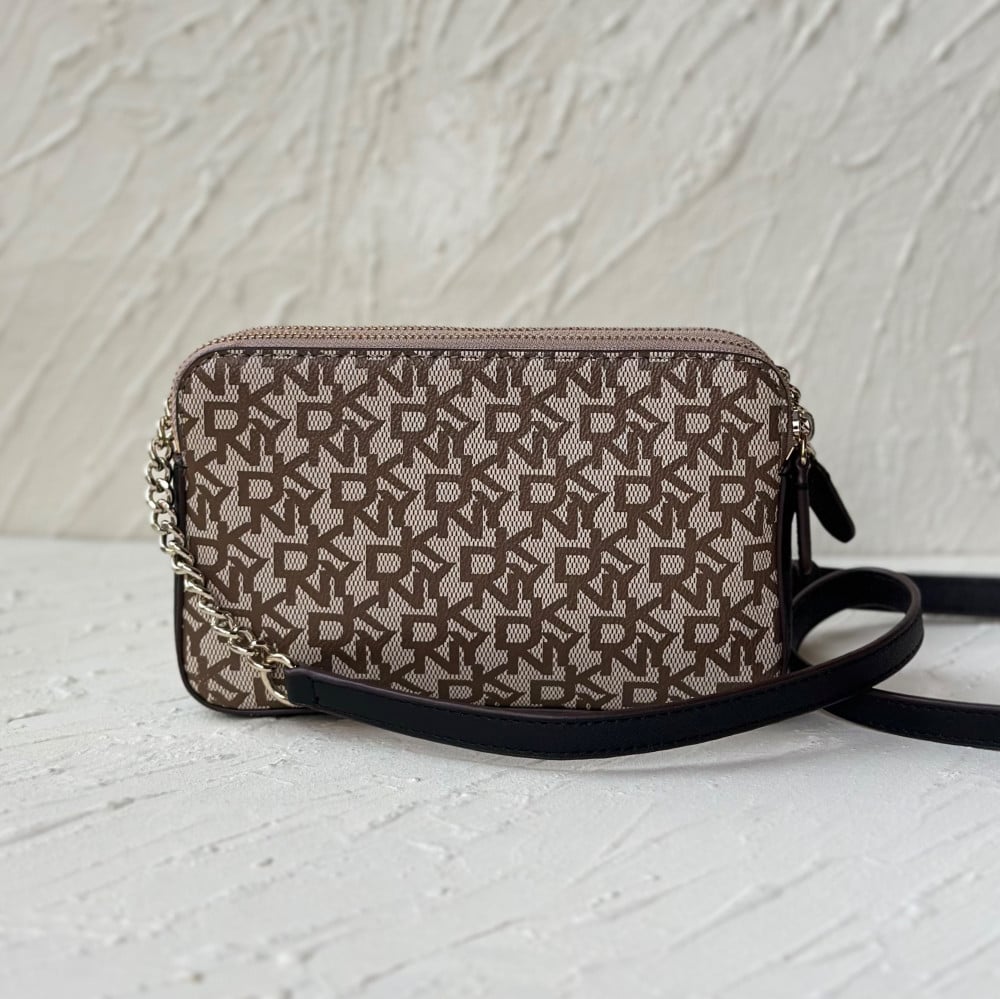 شنطة كروس بودي بجلد عالي الجودة و مزين ببرنت اللوقو. الشنطة جميلة و جداً عملية بنفس الوقت. لها جيبين بسحابين منفصلين و جيب في المنتصف. الشنطة تتسع للاحتياجات اليومية حجمها جداً مثالي للي تدور على شنطة عملية صغيرة بس بنفس الوقت تشيل.